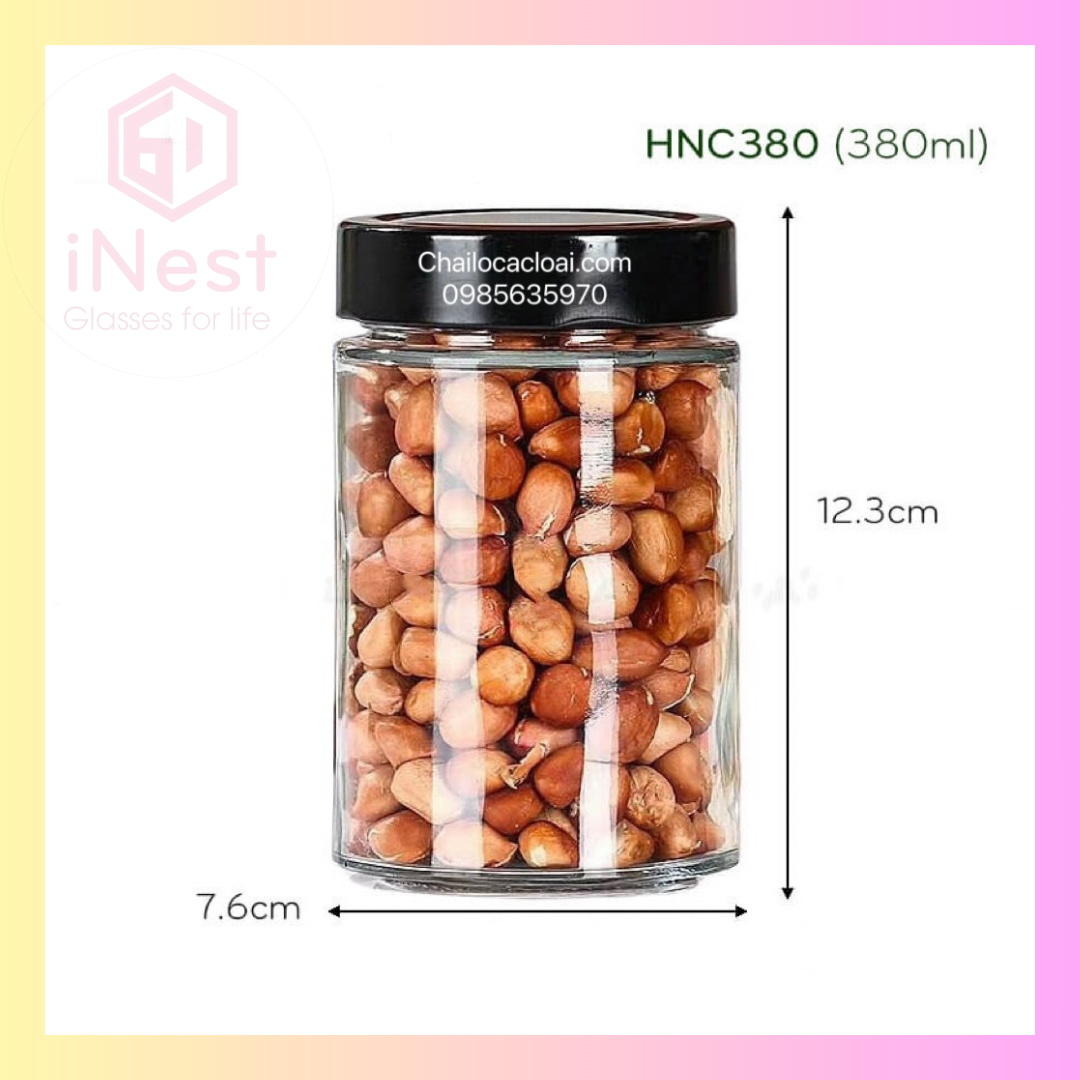 Hủ Thủy Tinh tròn cao Nắp Thiếc 380ml